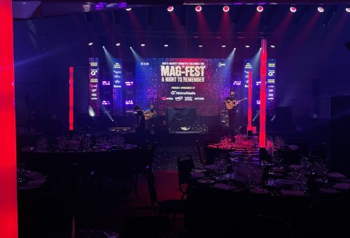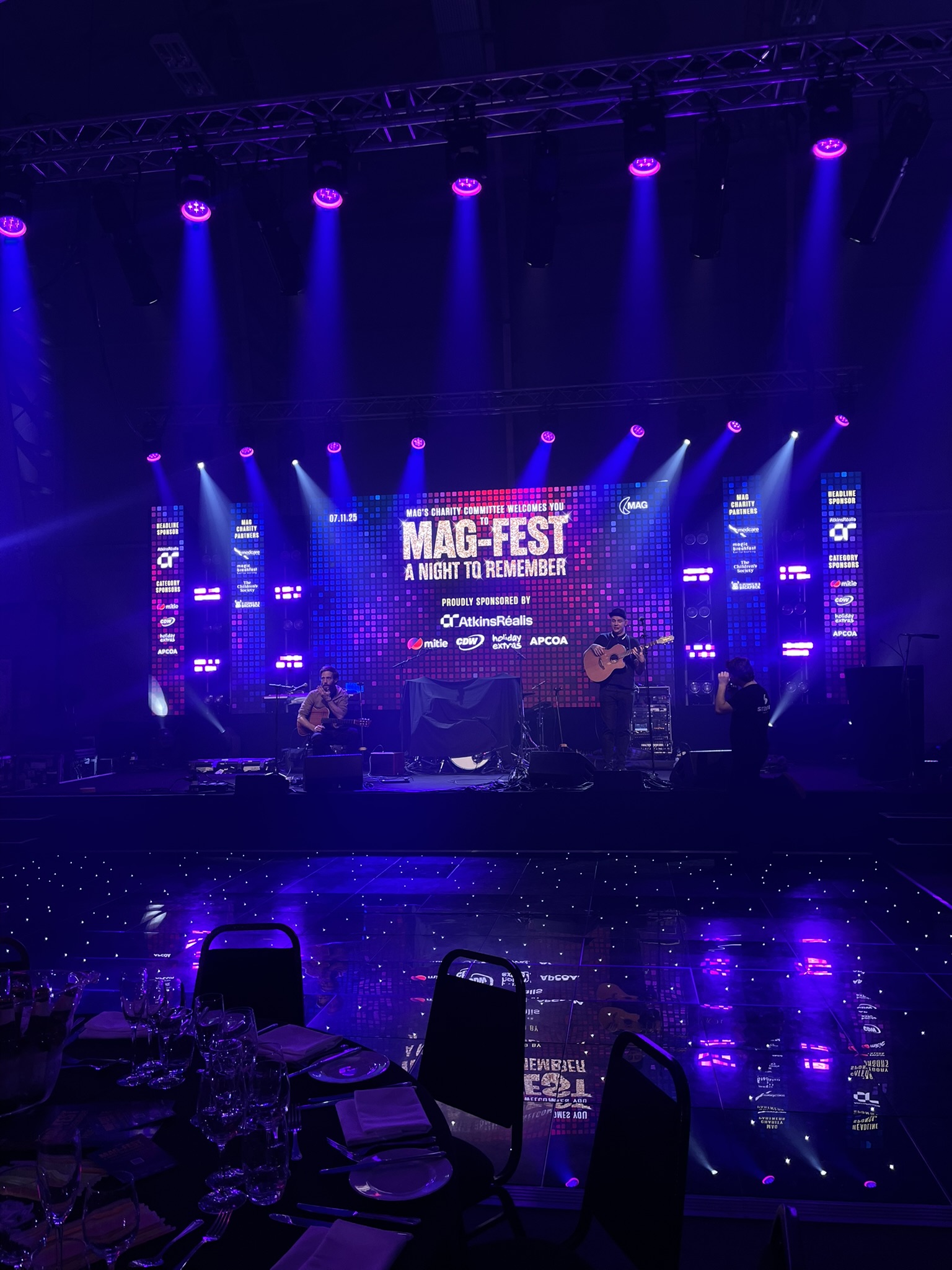 Following the success of the MAG Charity dinner in 2024, Sterling were asked to provide AV for the Charity ball again in 2025. The brief included creating a charity ball dinner with a festival theme to create MAG-Fest.