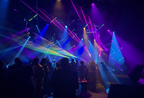 NHS Confed host a member reception and, as always, were looking for a space that could transform from day to night. This year was no different, with a laser show and a walk around band. In support of Pride Month, the lighting and lasers were programmed in a rainbow colour scheme.