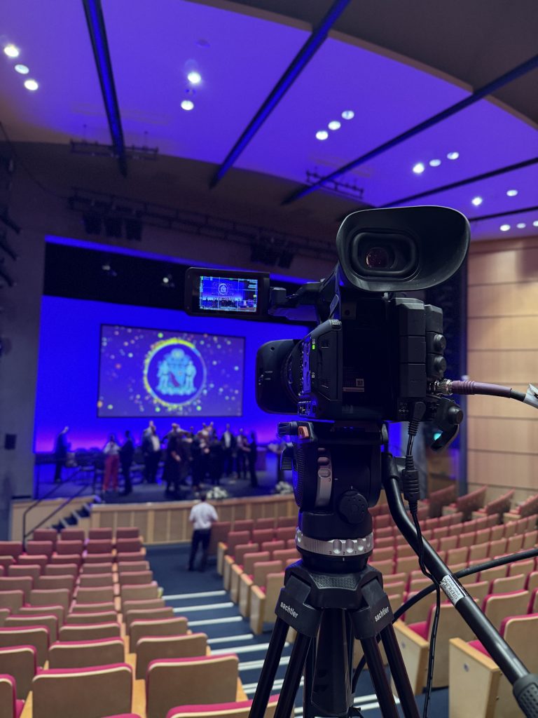 Full Audio-visual support for the conference hall including a branded stage set which featured a large central LED screen